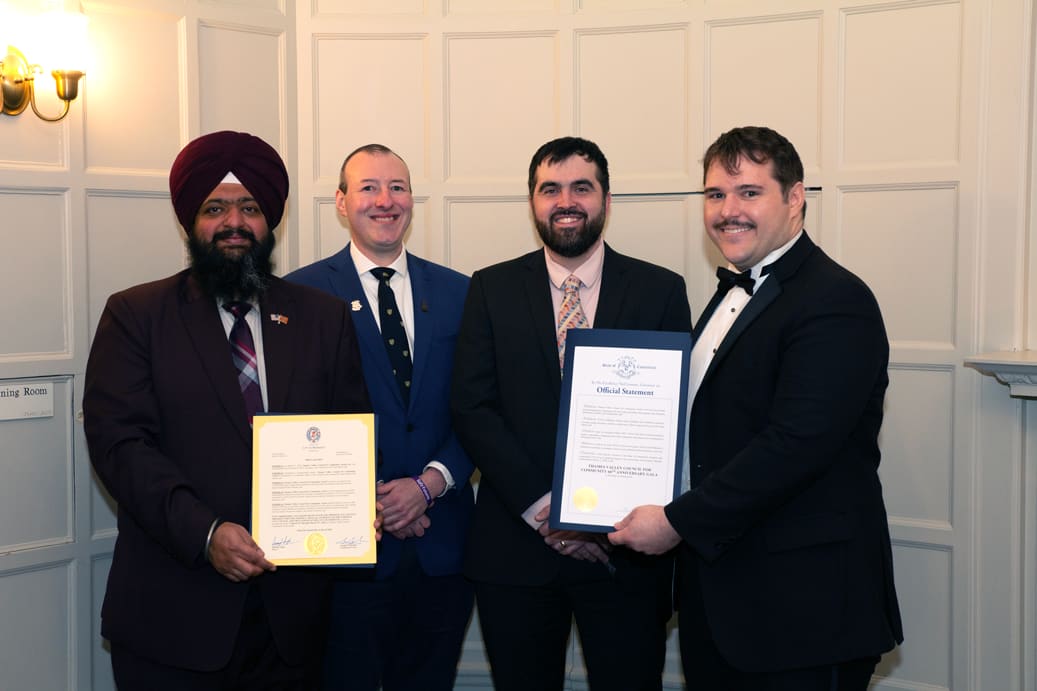 Photo (L to R): Norwich City Mayor Swarnjit Singh, State Representatives Nick Gauthier and Nick Menapace, TVCCA CEO Josh Kelly, with proclamations from both the City of Norwich and Governor Lamont’s office. Over 100 community leaders, partners and supporters gathered on March 14th at Eolia Mansion at Harkness Memorial State Park in Waterford to celebrate Thames Valley Council for Community Action’s 60 years of service to eastern Connecticut. State legislators, partner agencies and municipal representatives praised TVCCA’s commitment to providing a wide variety of services to those in need, including housing/homelessness prevention, energy assistance, early childhood education, employment assistance, senior nutrition, WIC, and family support programs. The fundraising evening was made possible through the support of sponsors including Norwich Public Utilities, Dime Bank, Nutmeg Consulting, IMA Financial, Ascend Bank, NFP, Mohegan Sun, and Centreville Bank. TVCCA CEO Josh Kelly thanked attendees for their continued partnership and support, emphasizing that community involvement remains central to the agency’s mission. “As a community action agency, we rely on the voices and participation of the people we serve and the communities we work in,” Kelly said. “By listening to residents and working alongside our partners, we can better understand and address the real and immediate challenges facing families in our region.” Norwich City Mayor Swarnjit Singh, one of the evening’s honored guests, presented a proclamation praising TVCCA’s many years of service and designating March 16-21 “TVCCA Week” in Norwich. For more information about TVCCA and its programs, visit www.tvcca.org. Media Contact : Penny Newbury 860.425.6522 pnewbury@tvcca.org